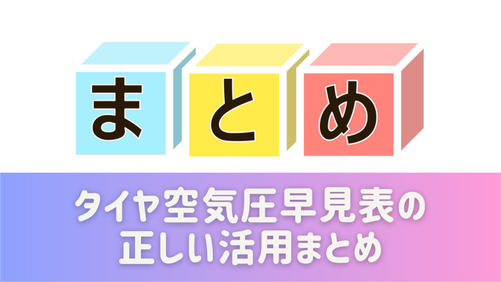 ここまで、タイヤ空気圧の基本から早見表の見方、管理方法までを解説してきました。