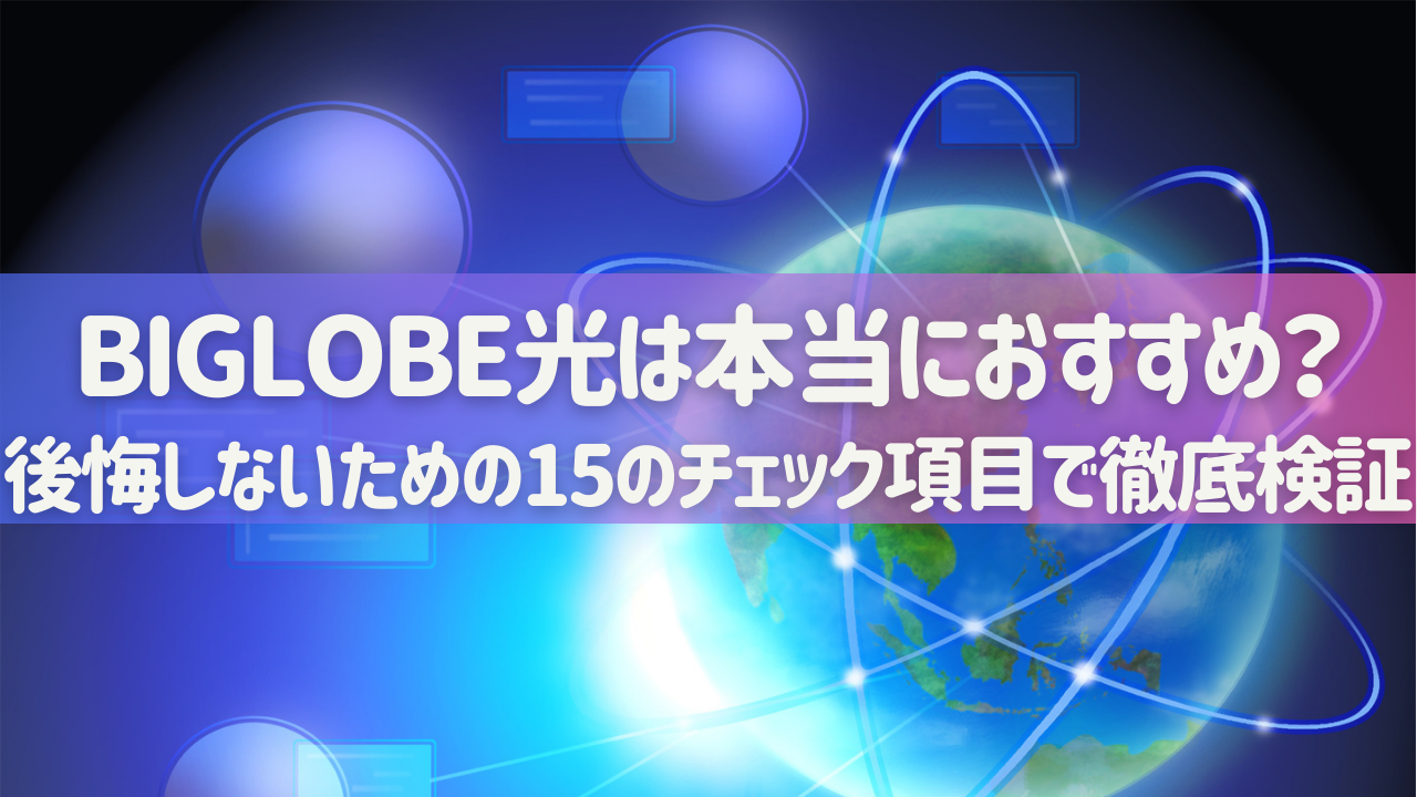 本記事では、光回線選びで失敗しないための15のチェック項目を用いて、BIGLOBE光が本当におすすめできるサービスなのかを客観的に検証しました。
