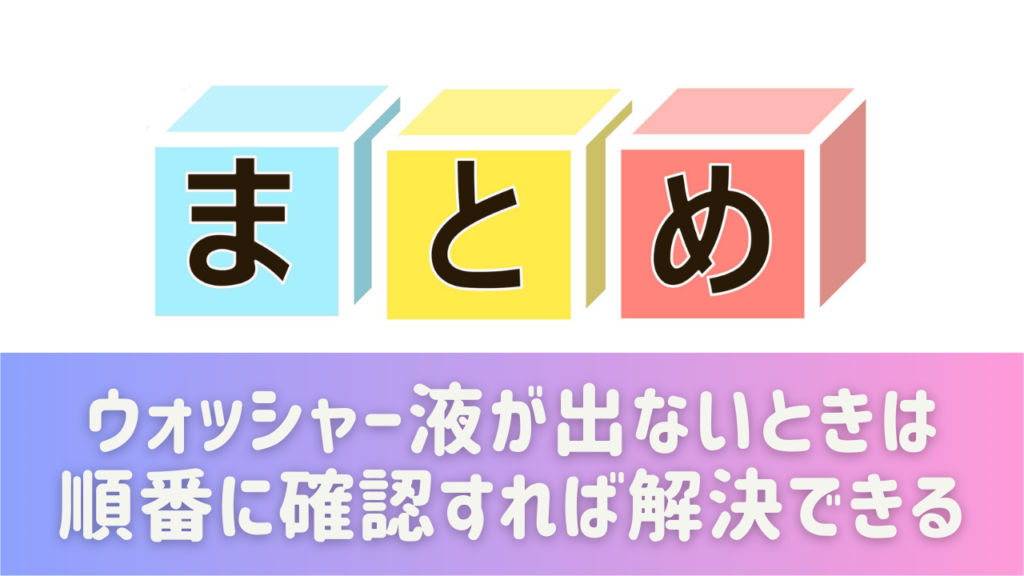 まとめ|ウォッシャー液が出ないときは順番に確認すれば解決できる
