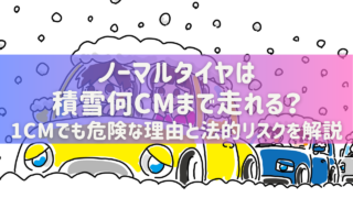 車 ノーマルタイヤは積雪何cmまで走れる?1cmでも危険な理由と法的リスクを解説 ノーマルタイヤは積雪何cmまで走れるのかと不安になる方は少なくありません。結論から言えば、路面が白くなった時点で安全とは言えないのが現実です。本記事では、積雪1cmでも危険とされる理由をタイヤ構造や制動距離のデータからわかりやすく解説します... 車